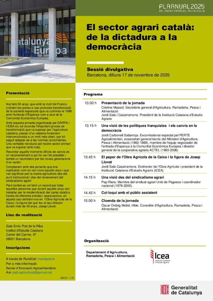 Notícies Gestió del Mosaic Agroforestal Mediterrani Dijous, 16 d’octubre de 2025 Arrosaires del Delta de l’Ebre i Secció de Crèdit SCCL Més informació